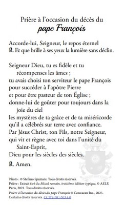 2) Carte de prière pour le repos de l'âme du pape François Cliquez pour cette carte : CARTE