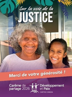 Développement et Paix ― Caritas Canada vous remercie d’avoir appuyé la campagne Sur la voie de la justice en faisant un don au Carême de partage. (source : Développement et Paix)